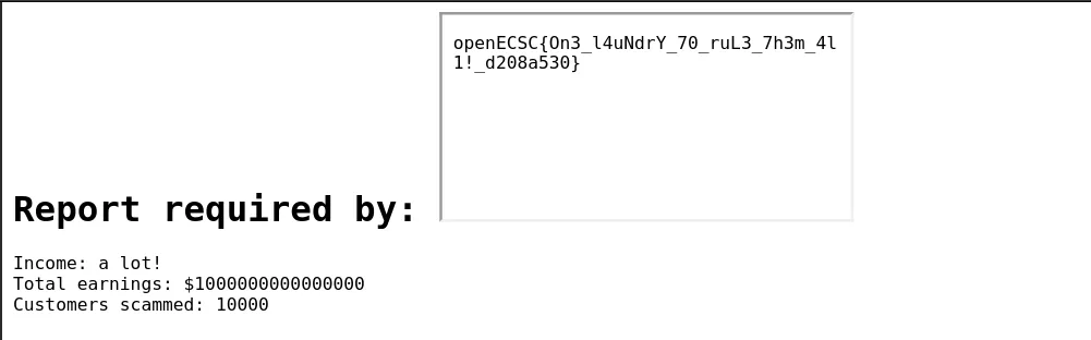 Flag: openECSC{On3_l4uNdrY_70_ruL3_7h3m_4l1!_d208a530}